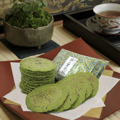 - 茶葉入り煎餅は、お茶請けに最適なお菓子です。お茶の香りと煎餅の塩味が、お茶の美味しさを引き立てます。