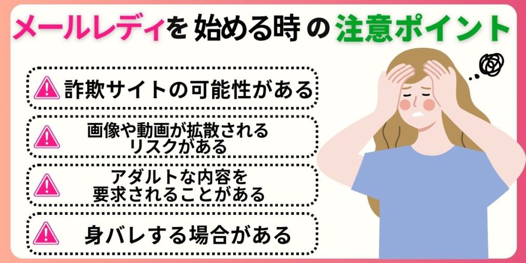 「メールレディが送るメールって普通に送るメールと何が違うの?」 「メールレディに関する悪いウワサって実際どう対策すればいいの?」 以上のような疑問を持つ人は、トラブル回避のためにも事前に確認しましょう。