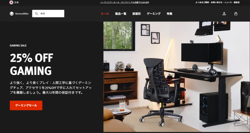 | Herman Miller | Embody Gaming | 約230,000円〜 | 姿勢矯正◎・最上級の座り心地 | 価格が非常に高い |