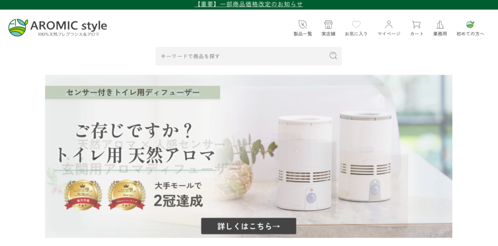 「アロミックスタイル」は、国産の天然精油を活かした製品づくりを徹底しているメーカー直販ブランドで、アロマ初心者からプロフェッショナルまで幅広く支持されています。
