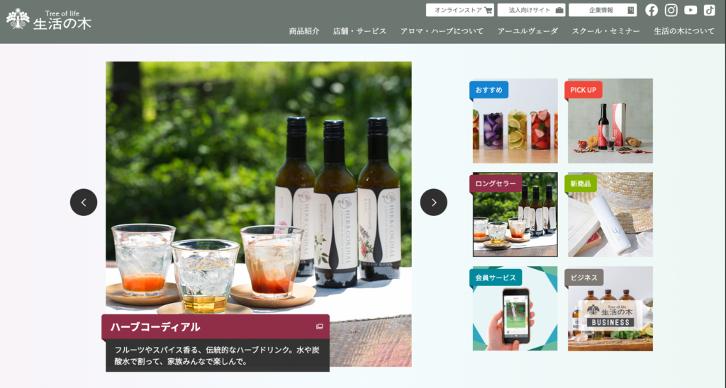 ハーブとアロマの専門店として長年愛されている「生活の木」は、信頼性と商品バリエーションの豊富さで他社を圧倒しています。