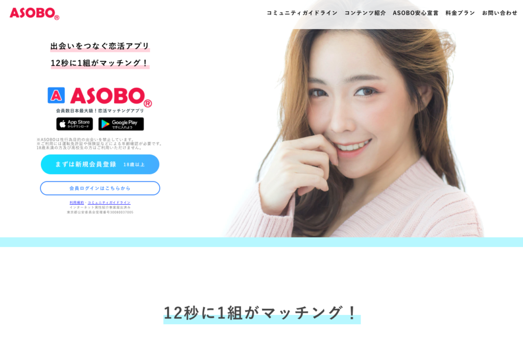 ASOBOは、2001年にサービスを開始した老舗のマッチングアプリで、累計会員数は1,500万人を超えています。