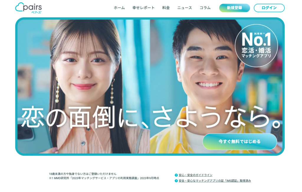 Pairsは、日本国内で1,500万人以上の会員数を誇る最大級のマッチングアプリで、20代〜40代の男女に支持されています。