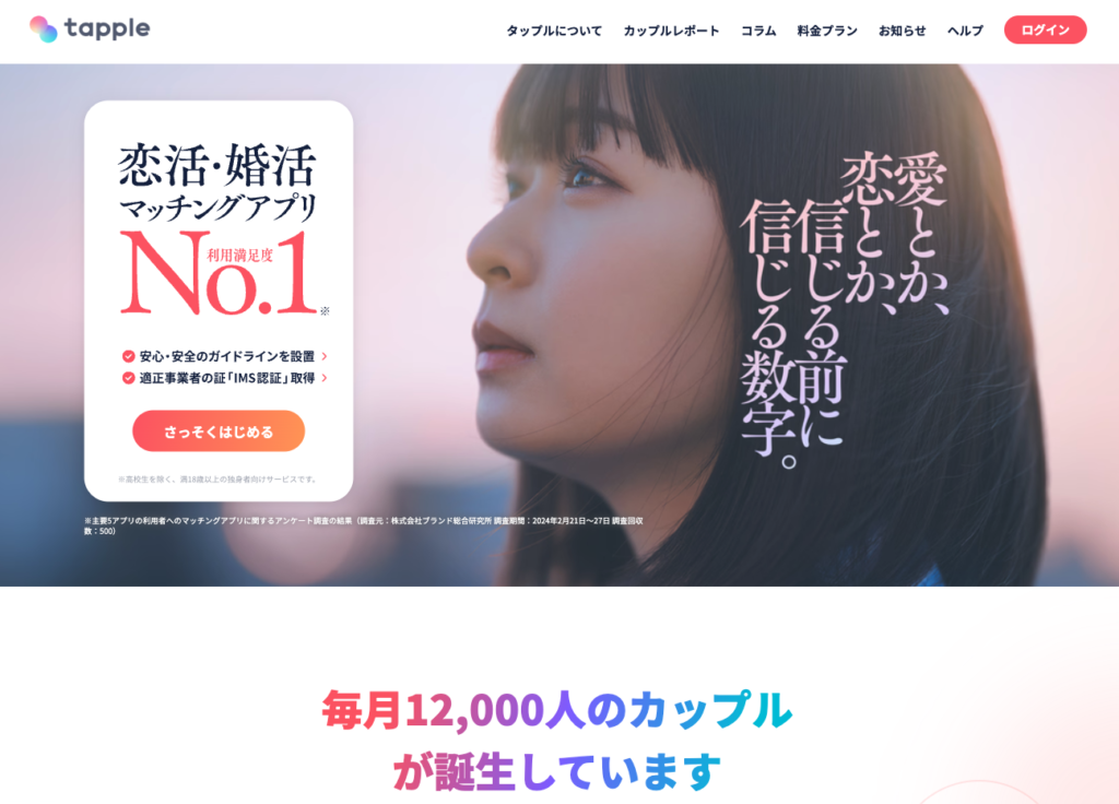 タップルは、20代の若年層を中心に人気のマッチングアプリで、趣味や興味を通じて気軽に出会えるのが特徴です。