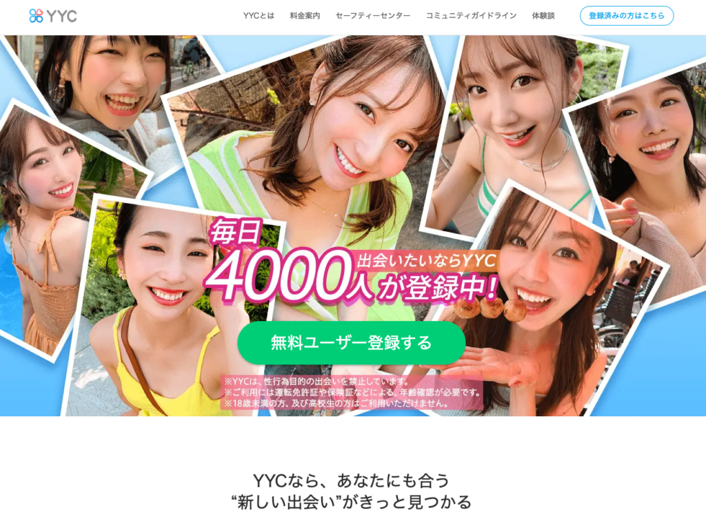 YYC(ワイワイシー)は、2000年にサービスを開始して以来、累計会員数1,600万人を誇る日本国内有数の老舗マッチングアプリです。