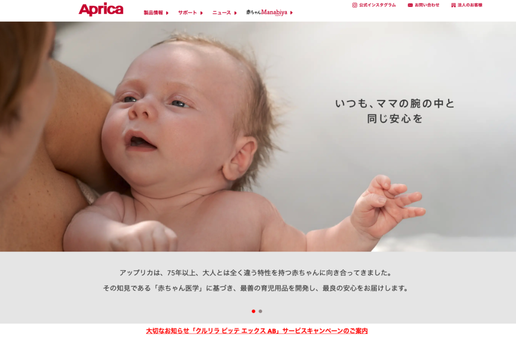 Apricaは、赤ちゃんの発育と快適性を第一に考えた製品開発に定評のある日本ブランド。
