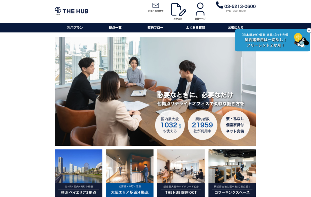 月額8,800円〜という手ごろな価格帯で、東京都心をはじめとした全国の主要都市に展開。さらに、グローバルなネットワークを活かし、英語対応可能な拠点も存在します。