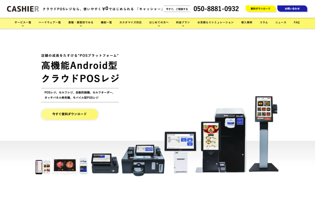CASHIERは直感的な操作性と高い機能性を兼ね備えた、Android型クラウドPOSレジの代表格です。