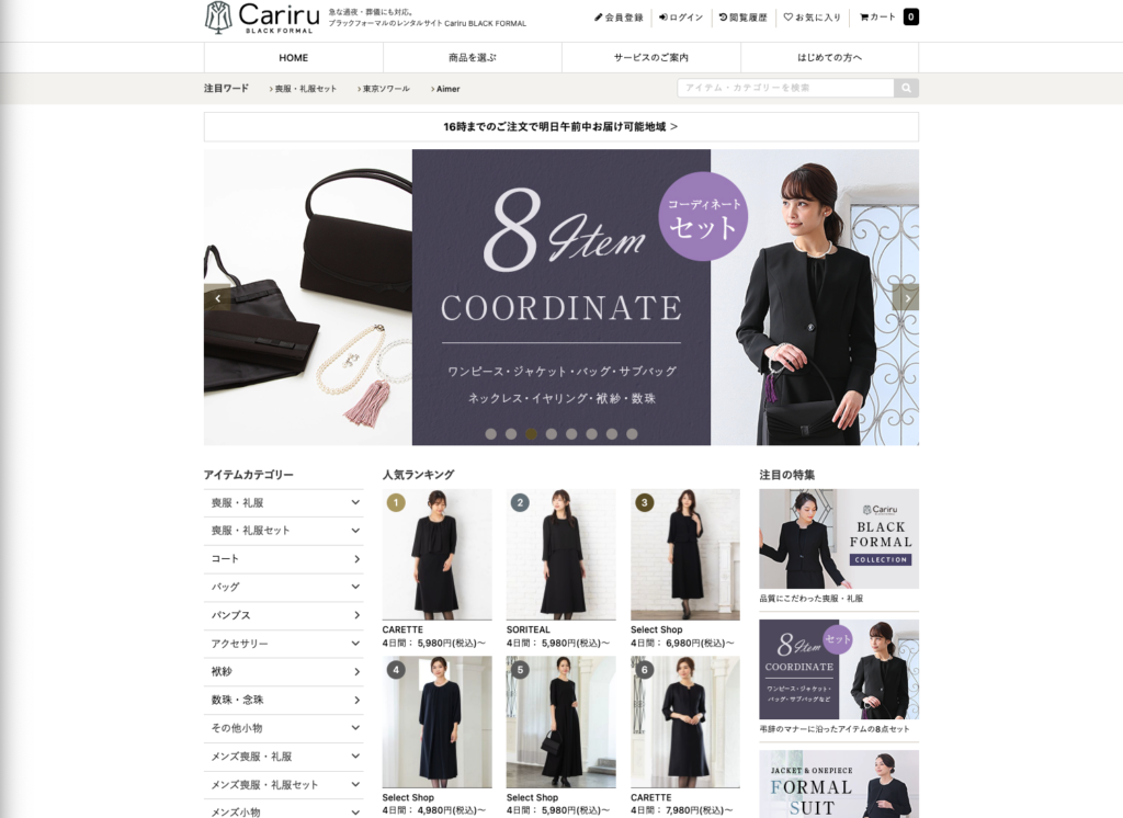 **Cariru BLACK FORMAL(カリル ブラックフォーマル)**は、冠婚葬祭や式典などフォーマルな場にふさわしい礼服を手軽にレンタルできる専門サービスです。
