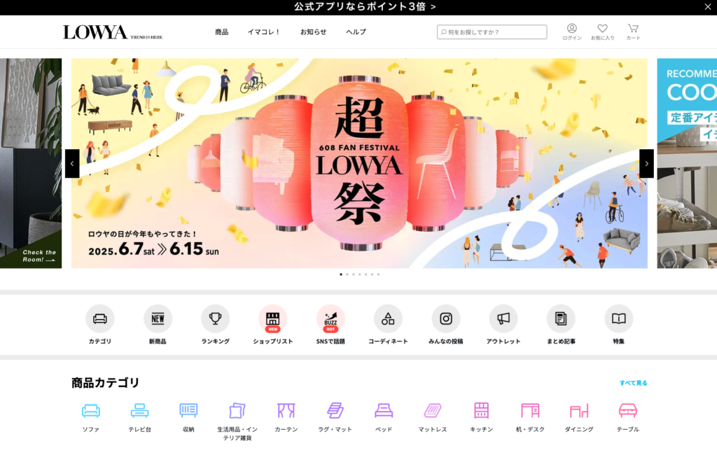 LOWYAは、スタイリッシュでトレンドをおさえた家具がリーズナブルに手に入る人気通販サイトです。