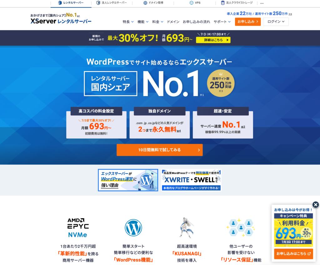第3位:エックスサーバー(XSERVER)【エックスサーバー株式会社】