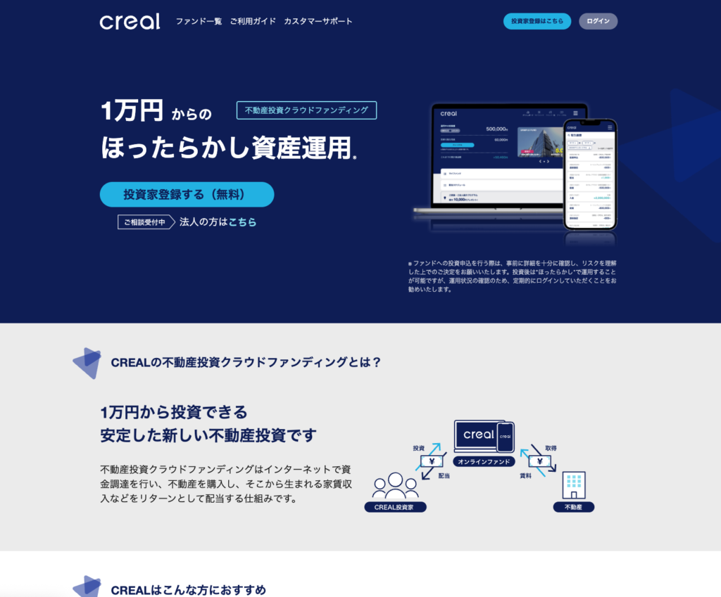 | CREAL | 1万円 | 高い透明性・安定実績 | クリアル株式会社 | 公式サイト |