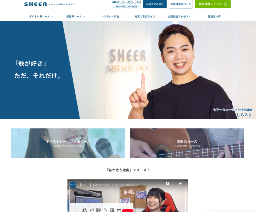 全国100か所以上に校舎を構える「シアーミュージック」は、通学型ボイトレの代表格。ひとり一人の目的やペースに合わせて、マンツーマンで指導を行うスタイルが好評です。プロの講師陣が揃っており、歌唱力向上だけでなく、話し方や滑舌改善のレッスンにも対応しています。