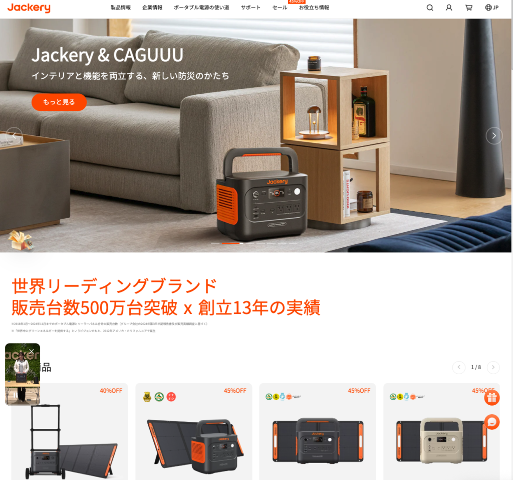 - Jackeryソーラーパネルと連携で充電自由度が高い