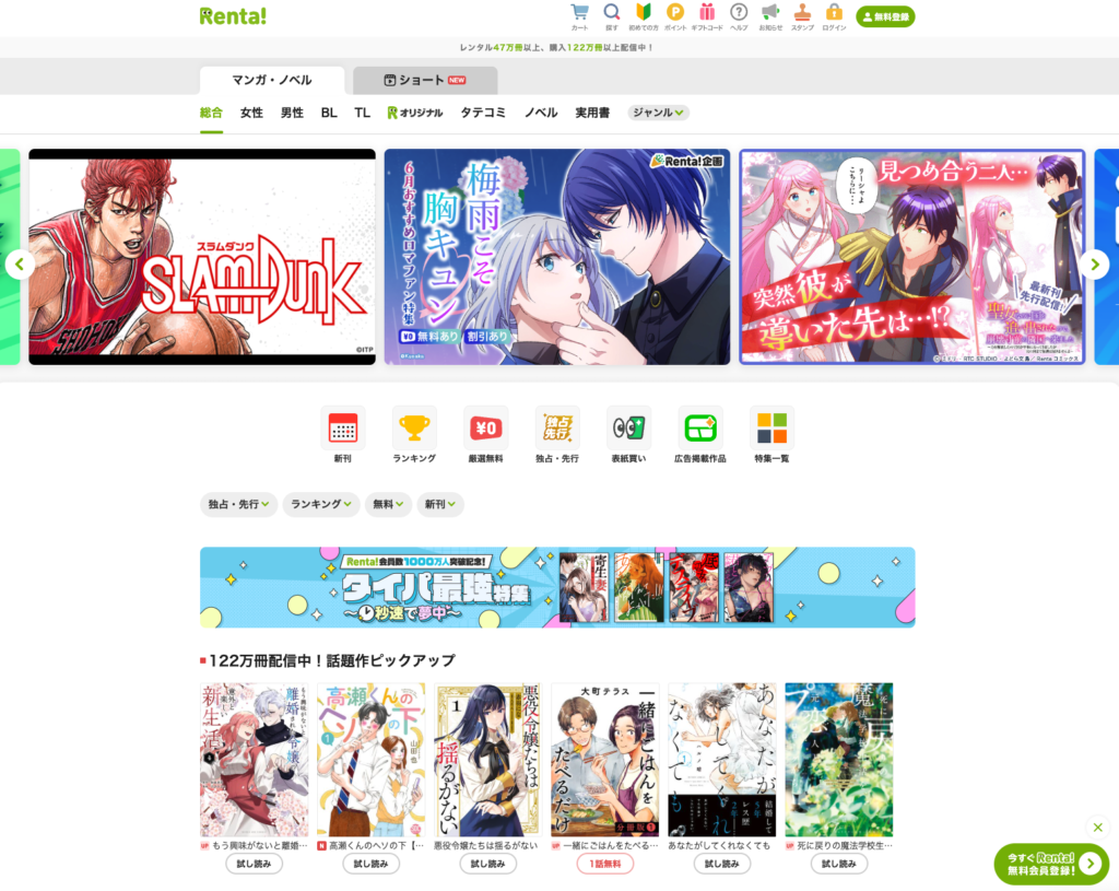 また、Renta!限定のオリジナル作品やコミカライズも多く、隠れた名作との出会いも期待できます。