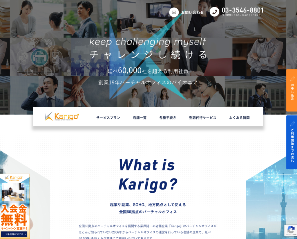 第3位:Karigo(カリゴ)バーチャルオフィス