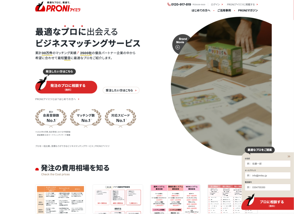 導入から保守運用までワンストップで対応できる業者をマッチングしてくれるため、社内リソースが限られている中小企業やスタートアップに特におすすめ。オペレーターの対応も丁寧で、導入初心者にも安心感があります。
