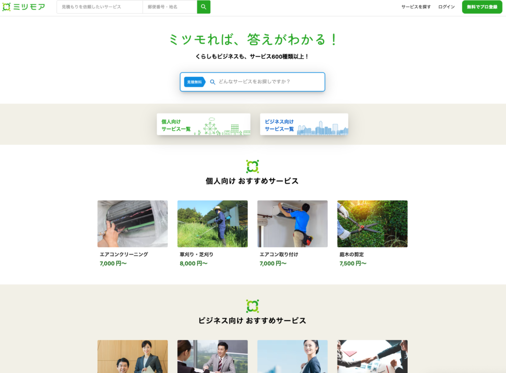 ミツモアは、LINE感覚で業者とチャットができる新感覚のマッチングサービス。最短1分でマッチングが完了し、即日中に見積もり取得まで完了するケースもあります。