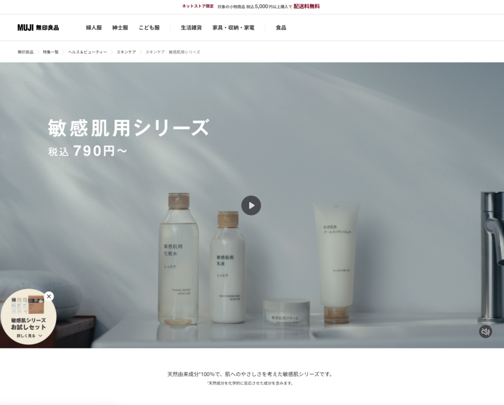 第3位:無印良品 敏感肌用高保湿シリーズ