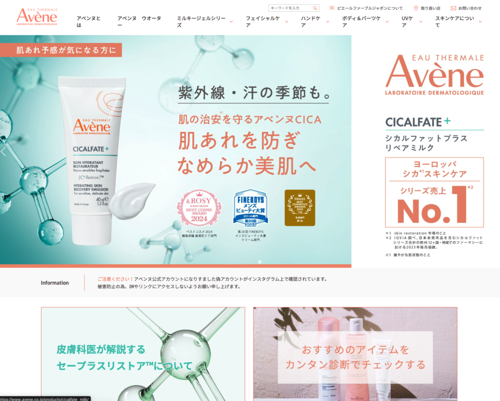 **南フランスのアベンヌ温泉水をベースにしたスキンケアブランド、アベンヌ。**敏感肌用化粧水として有名な「スキンバランスシリーズ」は、肌をやさしく保護し、乾燥や刺激から守ります。