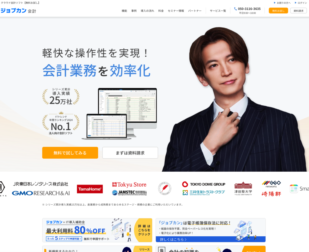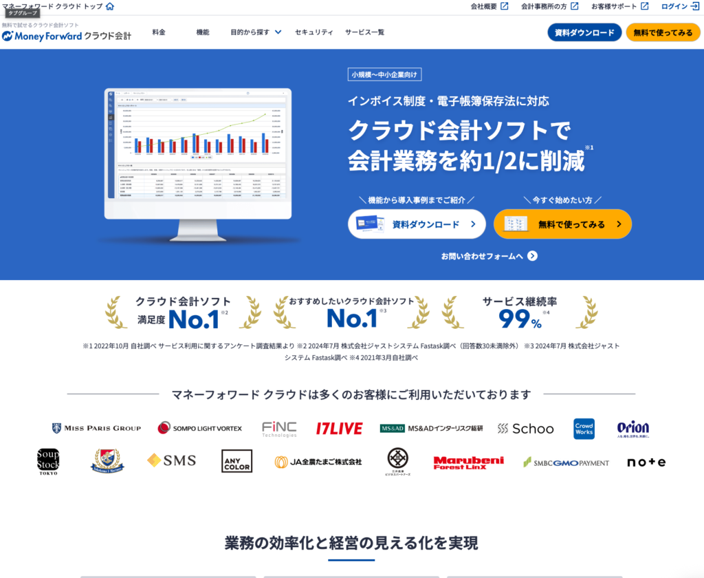 とくに中小企業向けに使いやすく設計されており、仕訳や帳簿作成、決算書の作成、税理士とのデータ共有などに対応。料金体系も明快で、会計にかけるコストを抑えたい企業にも適しています。