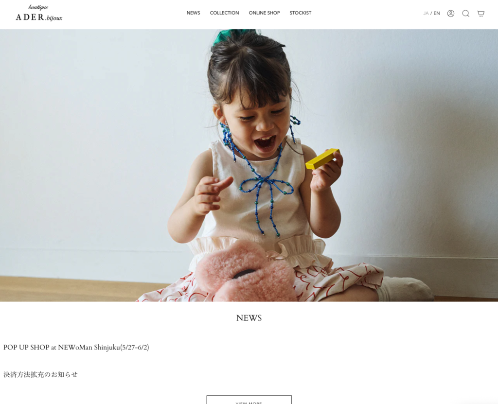 モードとヴィンテージ感を絶妙に融合させたデザインが印象的なADER.bijoux。大ぶりなイヤリングやネックレスが多く、ドレスアップスタイルやシンプルコーデの主役として愛用されています。