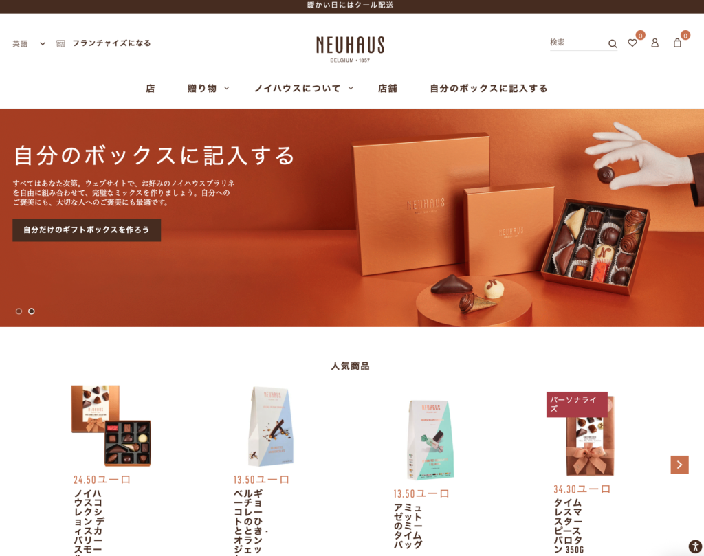 | Neuhaus | 1857年 | プラリネの元祖、ギフト向け | 高級 | ○(通販可) |