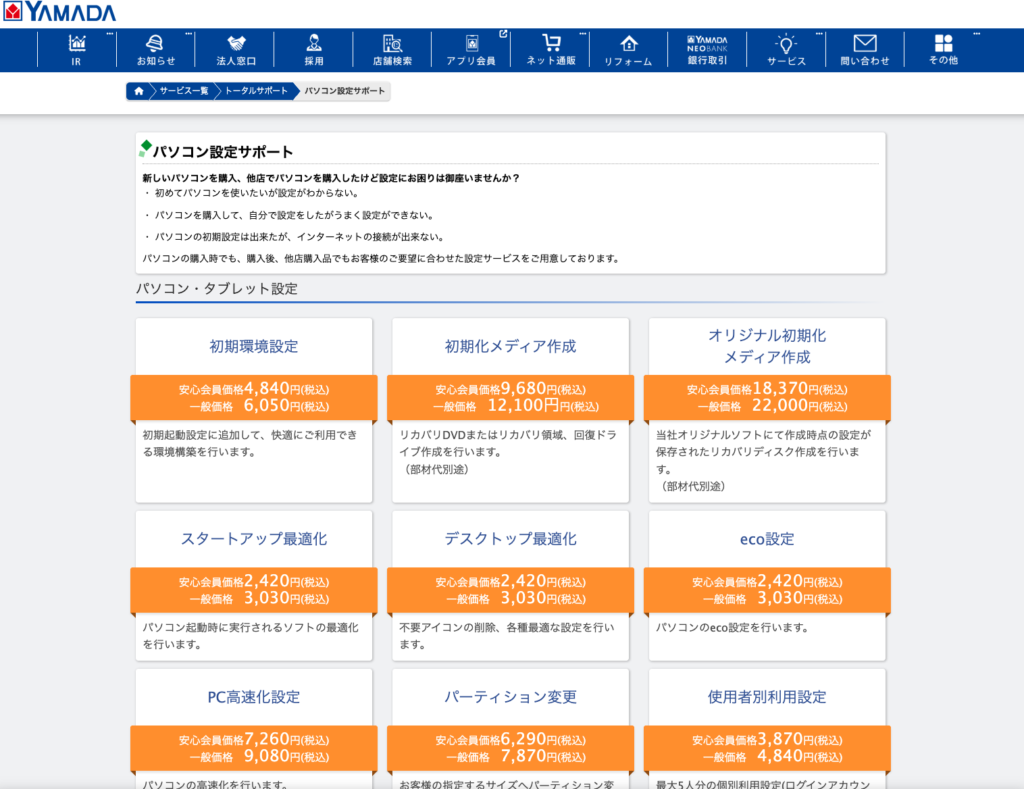 | ヤマダ電機サポート | 店舗・訪問・リモート | 実店舗多数、月額プランや持ち込み対応あり | 月額/単発 | 全国(実店舗) |